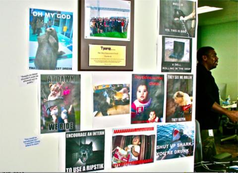 Khu vực hỗ trợ kỹ thuật treo đầy những bức ảnh chế nổi tiếng của cư dân mạng.